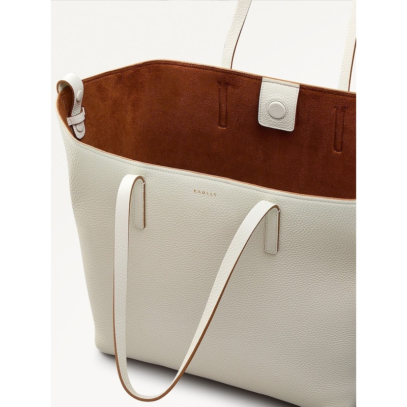 A timeless tote is the latest addition to our bestselling Dukes Place family. Designed with winged sides that can be tucked inwards and a detachable zipped pouch inside, which means always knowing where your keys are. Expertly crafted in soft grained leather that will last a lifetime. Grained leather, winged sides can be tucked in with a press stud tab, slim handles, magnetic tab fastening, bonded faux suede lining, interior detachable zipped leather pouch, foil logo, comes with a dust bag. Main 100% Leather. Lining 65% Cotton, 35% Polyester.