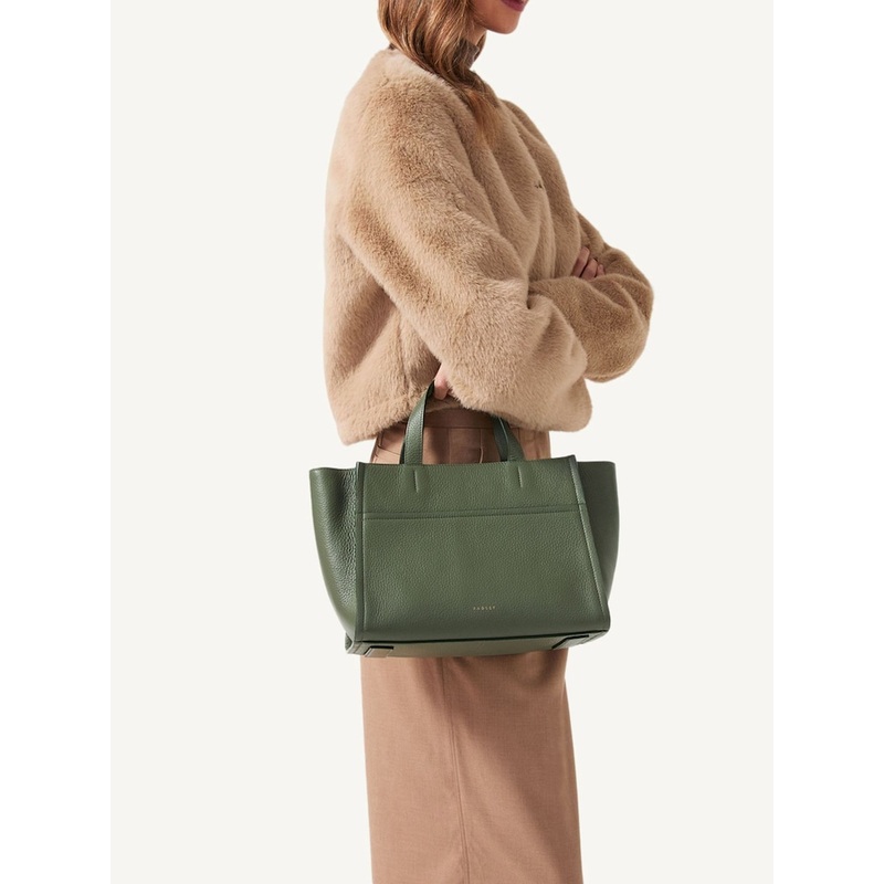 As reliable as your favourite pair of jeans. Our Oak Street grab Light Green bag is made to last in soft grained leather. A style thatll be there for you whenever you need it, with space for your everyday items and a detachable strap so you can go hands-free. Its the perfect fit. Made with grained leather Winged shape. Painted cut edges Grab handles Adjustable strap Sunken zip fastening with branded metal puller and leather trim Interior pockets Foil logo Comes with a dust bag Height 20cm Width 36cm Depth 14cm Main 100% Leather. Lining 88% Polyester, 12% Elastane.