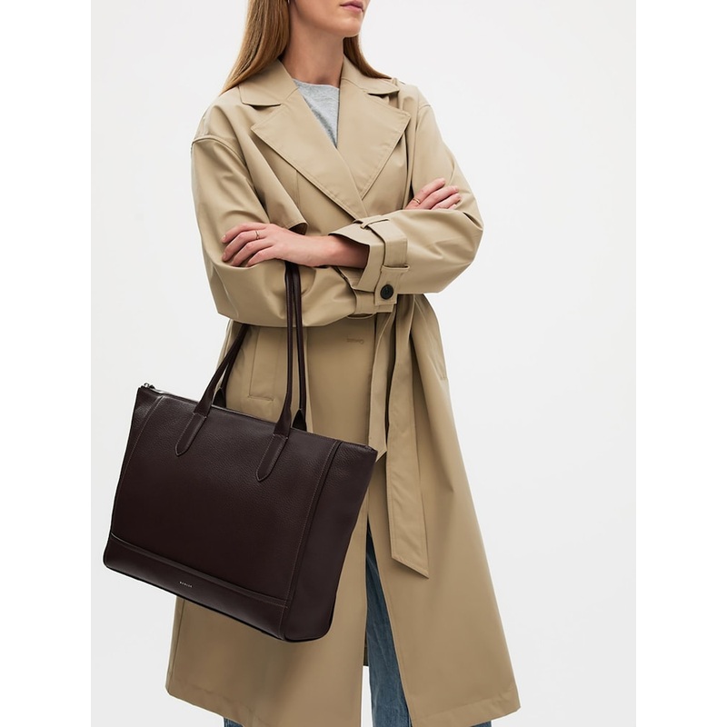 Made to last in soft grain leather. The Oak Street tote bag is back for autumn with updated craft details. A modern, winged shape perfect for busy days, designed with painted cut edges, branded hardware and a long leather zip puller. Grain leather. Winged