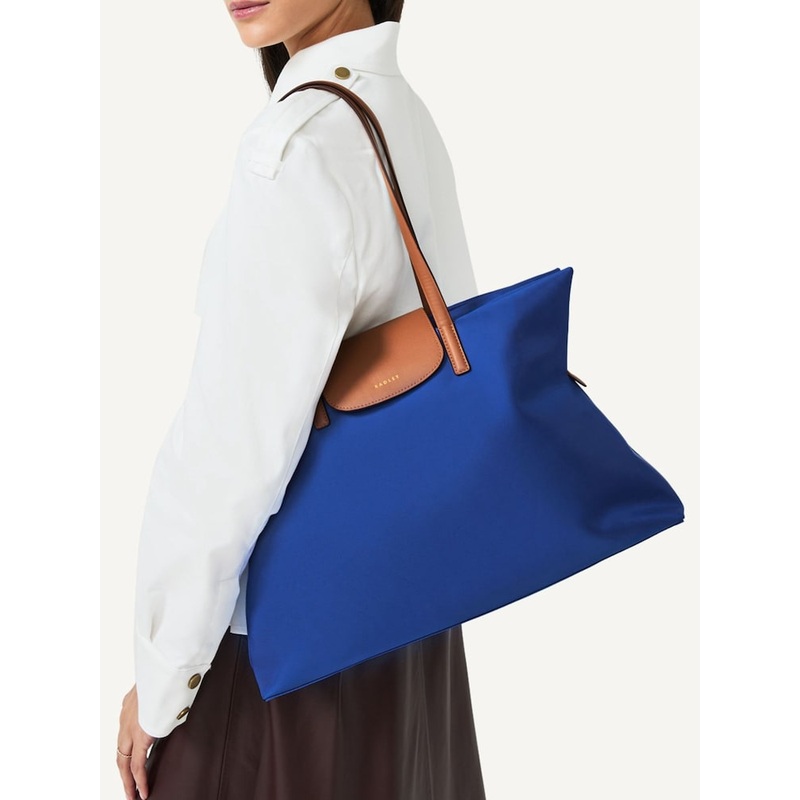 Our Pocket Essentials tote bag, reimagined. This updated squarer shape features a sunken zip fastening and logo tab across the top for extra security. Crafted using the same material. Water-based PU trims. Square shape. Padded shoulder straps. Magnetic tab