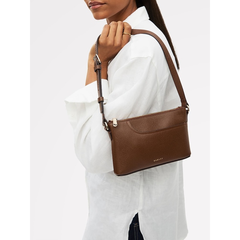 Based on an archived bestseller, this reworked edition of our Pockets bag shares the same iconic features as the original, with a slim shape, curved slip pocket, and adjustable strap. A modern mini shoulder style, adorned with keyring hardware and a brande