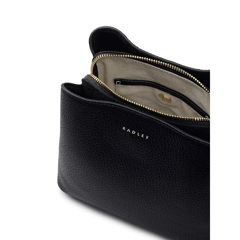 Based on a firm favourite, this smaller cross body bag is the latest addition to our bestselling Dukes Place family. Combining expertly crafted minimalism and soft grained leather, this style is made to last a lifetime and with the same three compartments inside so you always know where your keys are.. Grained leather. Adjustable cross-body strap. Centre zipped compartment with branded metal puller. Two slip compartments with magnetic fastenings. Interior pocket. Foil logo. Comes with a dust bag. Height 19cm Width 19cm Main 100% Leather. Lining 65% Cotton, 35% Polyester.