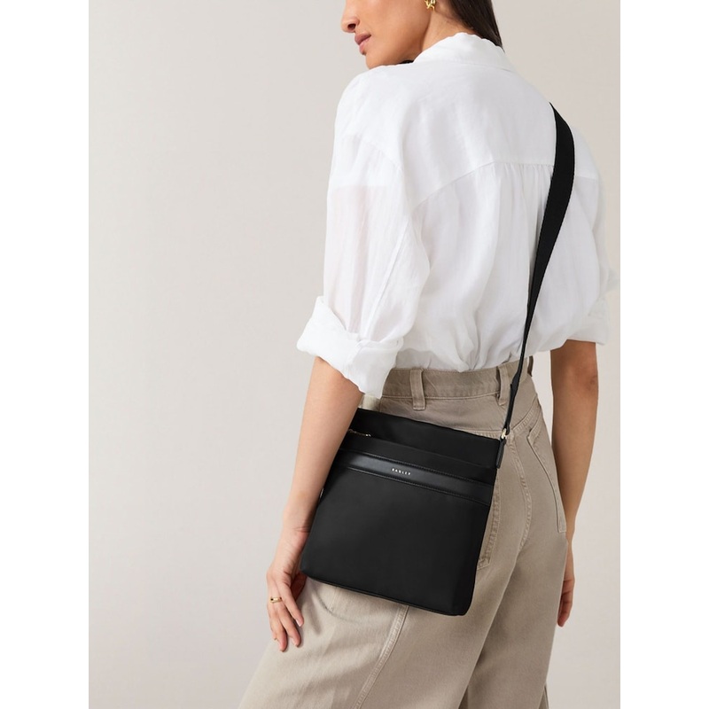 Used to create the Holland Park cross body bag a lightweight style perfect for your off. Duty days Made using polyester Water based PU trims Adjustable strap Front zipped pocket Back slip pocket Zip fastening Interior pocket Foil logo. Height 23cm Width 22cm Depth 4cm Main 100% Polyester. Lining 100% Polyester.