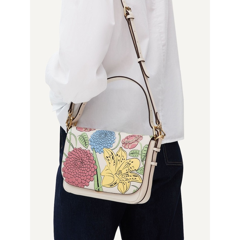 Designed in collaboration with the Royal Horticultural Society and inspired by illustrations held in the RHS Lindley Collections, our signature flapover cross body bag is reimagined with blossoming florals made with screen prints and embossing. Finished with a padded handle and detachable strap for versatility.