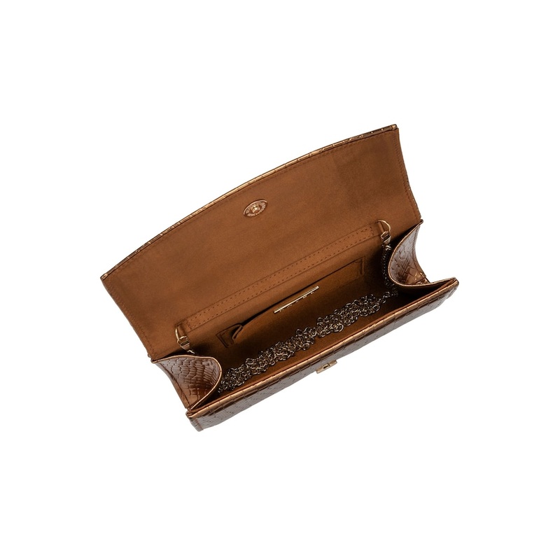Finish off any occasion look with this Ravel metallic clutch bag. This womens handbag features a sumptuous textile front panel, an internal slip pocket and is completed with a magnetic snap closure. This Ravel handbag will certainly add the finishing to an