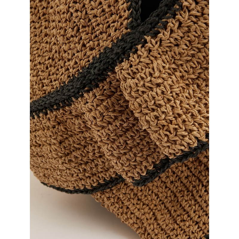 The Olescha bag is a slouchy summer tote crafted from panels of woven raffia, with a playful ruffle detail that adds dimension to the front. Smooth, adjustable shoulder straps ensure a comfortable, customisable fit. Raffia Ruffle detail Faux leather adjustable shoulder straps Internal zip pocket Height 45cm Width 50cm Depth 28cm Main 100% Paper. Trim 100% PU.