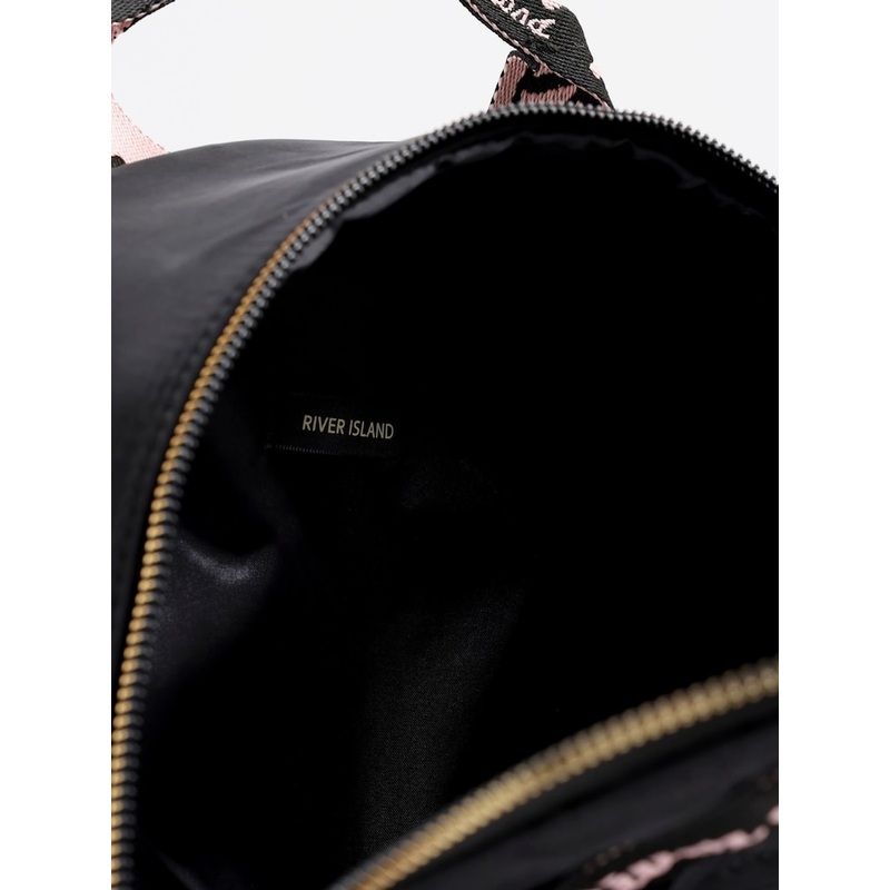 Black Nylon fabric Debossed river print River heart charm Metal branding Strapped Zipped fastening Front pocket Water bottle holder Fits A4 Padded back straps Top handle Wipe clean Not suitable for children under 36 months Bag Measurements: Height cm- 34 W