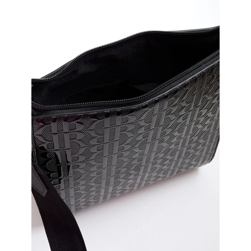 RI monogram print Patent Gold branding detail Adjustable cross body strap Interior pockets Zip fastening Strap length: 60cm H: 25cm x W: 25cm x D: 8cm Height 10.5cm Width 28cm Depth 8cm 100% Polyurethane.