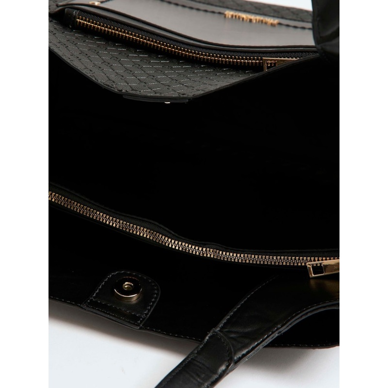 Faux suede Embossed monogram print Front pocket Gold branding Interior zipped compartment Popper fastening Handle drop: 24cm H: 26cm x W: 41cm x D: 16cm Depth 16cm 50% PVC, 50% Polyurethane.