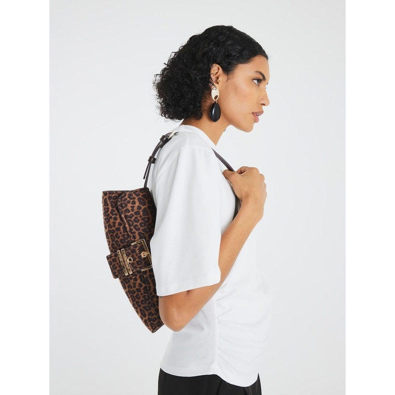 Leopard print Metal buckled front Stud pressed fastening RI branding Adjustable strap Handle length: 25cm Bag dimensions L: 12.5cm x D: 4.5cm x W: 30cm Depth 4.5cm 70% Polyurethane, 30% Polyester.