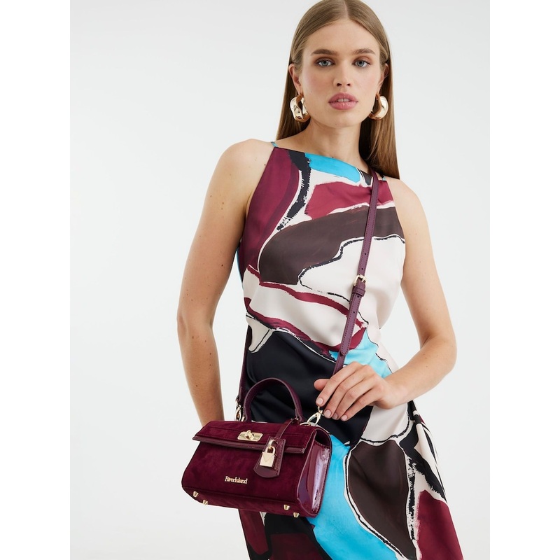 Grab handle Adjustable strap Gold RI branding detail Lock charm Front lock closure Popper fastening H: 12.5cm, W: 22cm, D: 7cm 100% Polyester.