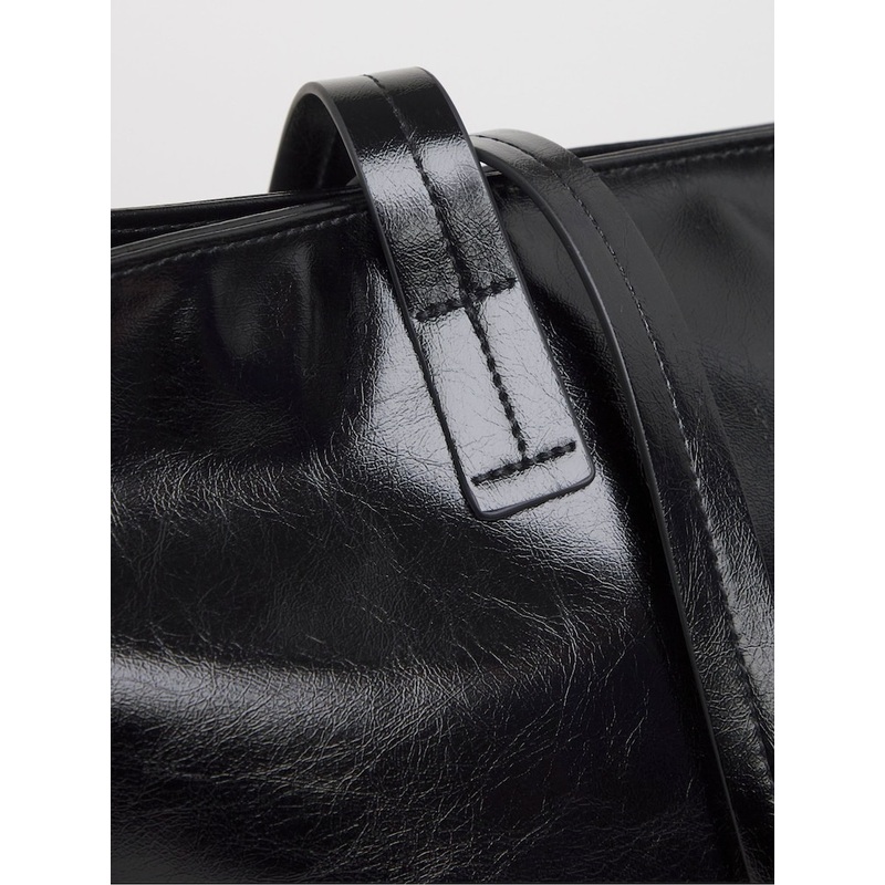 This classic tote bag is an ideal everyday wear, perfect to pair with any outfit. Featuring a crinkle faux leather design and small fastening. Depth 1.5cm 100% Polyurethane.