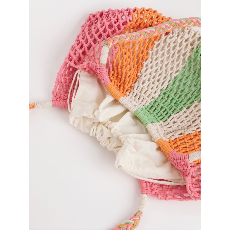 Brighten up your look with our multi-stripe crochet shopper bag! Complete in an intricte multi-stripe crochet detail with a secure cotton lining to keep your belonings safe. This bag is also perfectly packable and ideal for travel! Fold it into your suitca