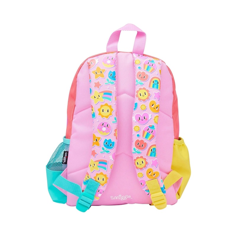 Big Dreams come in small sizes in the Smiggle Teeny Tiny collection, specifically designed for Smigglers 3+. The Big Dreams Junior Character backpack in pink is the perfect pick for school, travel and so much more! It features an adorable 3-D character applique on the front pocket for some extra Smiggle fun. Plus, stacks of handy features including 3 zipped compartments, dual drink bottle sleeves and comfy padded shoulder straps. Junior Smigglers will love bringing this bag along on all adventures! Padded adjustable shoulder straps Carry handle 3 zipped compartments main compartment with double zip Dual drink sleeves Internal compartments fit A4 notebook Name label 14.2L Height 36cm Width 26cm Depth 18cm Main 80% Polyester, 20% PU. Lining 100% Polyester.