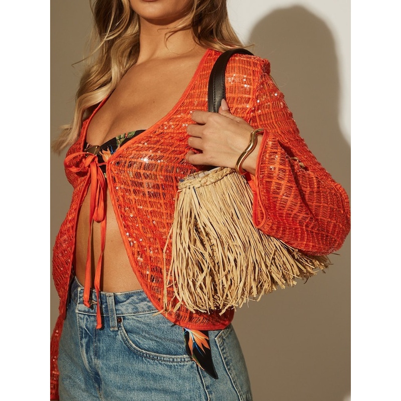 Introducing South Beach's Straw Fringe Mini Bag - a must-have for fashion-forward individuals! This adorable bag is sure to add a touch of fun and flair to your summer looks. Grab one now and prepare to turn heads wherever you go! 100% Polyester.