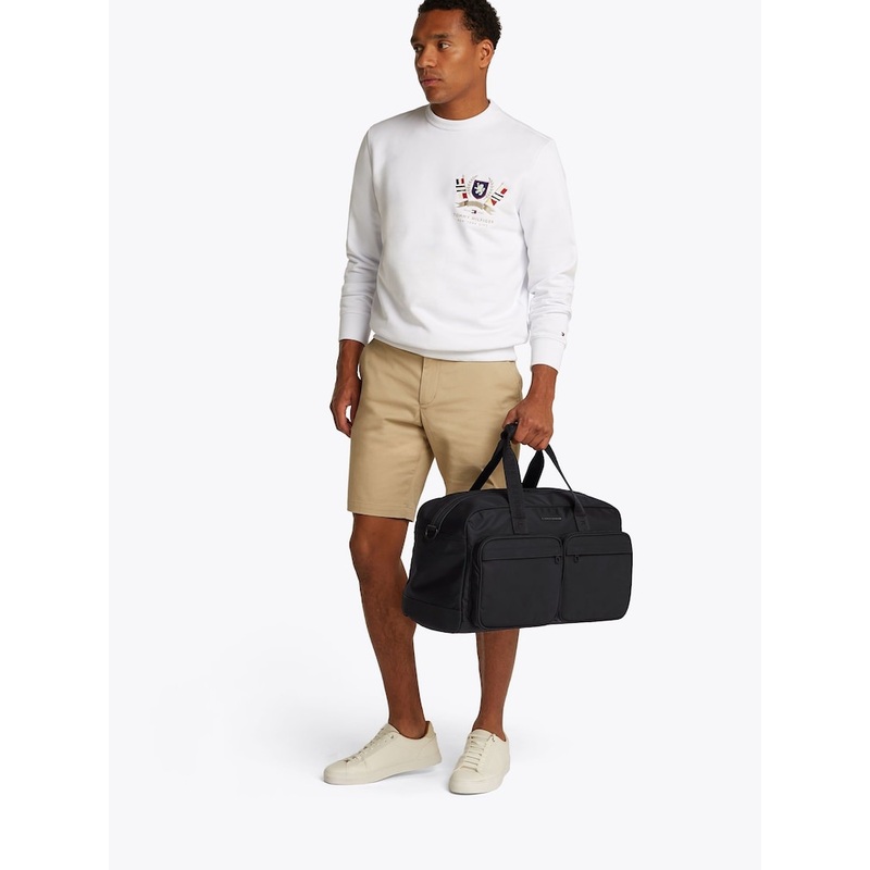 Weekender from Tommy Hilfiger. Care Instruction. Wipe with damp cloth. Do not wash or iron Height 3cm Width 2.5cm Depth 5cm 70% Polyester, 30% Polyurethane.