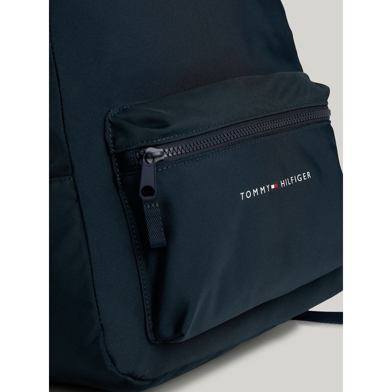 Carry essentials in style with this backpack, featuring a roomy main compartment with a laptop sleeve and an additional zipped front pocket. Highlights. Textured finish. Double zip closure. One top handle. Adjustable shoulder straps. Built-in laptop sleeve. One front zipped pocket. Tommy Hilfiger logo on front pocket. Tommy Hilfiger branding. Shape & fit. 30 x 13 x 38cm. Capacity 11L. 100% Polyester.