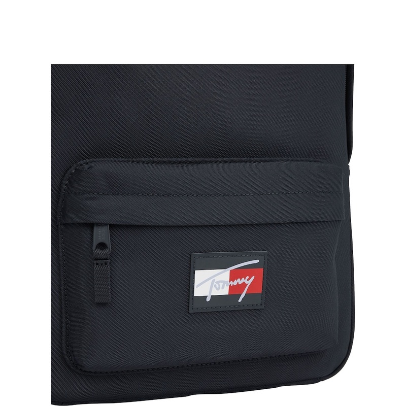 This spacious backpack is an ideal option for school with a roomy interior and a pocket on the front for easy access. Highlights. Textured finish. Zip closure. Two top handles. Adjustable shoulder straps. One main compartment. One exterior zipped pocket. TH signature logo flag patch on front. Tommy Hilfiger branding. Shape & fit. 29 x 11 x 35cm. 100% Recycled polyester.