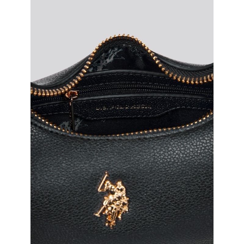 The U.S. Polo Assn. Jones Small Round Crossbody Bag is a stylish accessory that effortlessly marries sophistication with practicality. Featuring a secure main compartment with branded zip fastening, it keeps your essentials close at hand. The adjustable handle and optional shoulder strap offer versatile wear, making it ideal for any occasion. Adorned with gold tone hardware and the iconic Double Horsemen motif, it reflects the brand’s rich heritage. With an internal zip pocket and additional pocket for organised storage, this bag is a chic companion. Pair it with a flowy dress and sandals for a polished, effortless look. 100% PU.