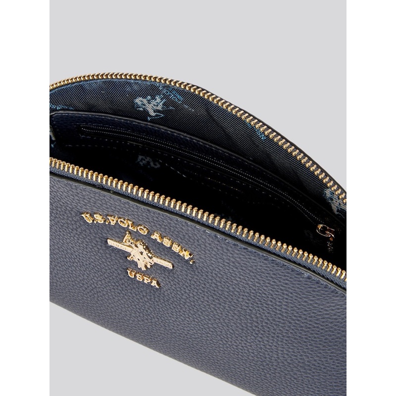 Elevate your travel essentials with the U.S. Polo Assn. Stanford Round Beauty Bag, a refined accessory designed with timeless elegance. The spacious main compartment, secured by a branded zip fastening, offers ample space for your beauty necessities, while gold tone hardware and the iconic Double Horsemen motif on the front add a touch of luxury. With internal pockets, including a zip pocket, it ensures your items stay organised and secure. Perfect for both daily use and travel, pair it with a chic tote for a coordinated and sophisticated look that echoes the brand’s polo heritage. 100% PU.