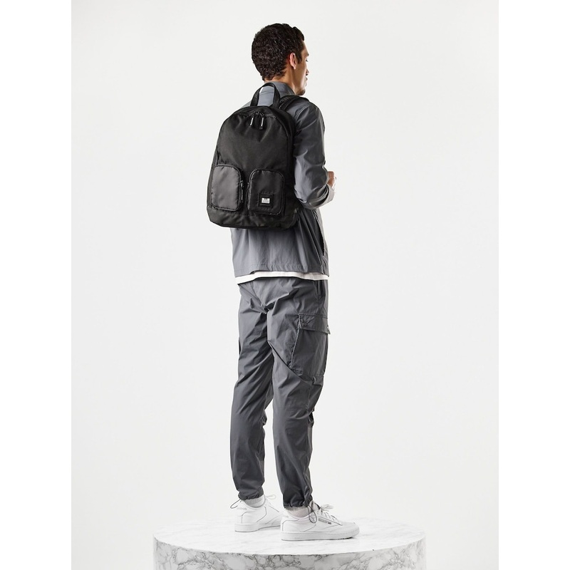 Top hand loop with custom WO jacquard webbing detail. Contrast grey lining with tonal Weekend Offender repeat print. Padded adjustable shoulder straps. Padded airmesh backwall. Branded zip pullers. External zip front pocket. Internal padded laptop pocket.