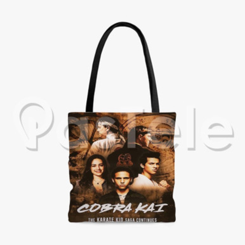 Durable. Stylish. Uniquely Yours. Carry your style everywhere with our custom-printed tote bags with Cobra Kai The Karate Kid Custom Personalized Tote Polyester Cotton Bags Unisex. Made from high-quality spun polyester, these bags are built to last while t