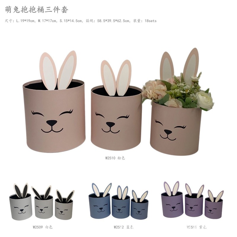 Cute Cute Rabbit Insert Card Cuddle Bucket Round Flower Box Three Sets of Flower Gift Box Companion Gift Packaging Box – Bag and Gift Box price