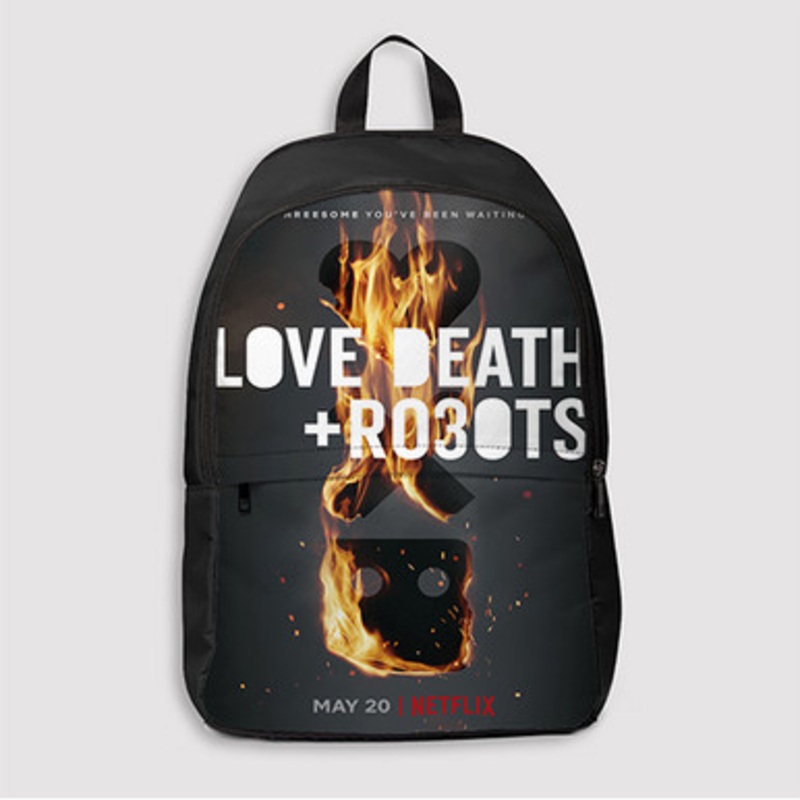Pastele Love Death Robots Custom Backpack Awesome Personalized School Bag Travel Bag Work Bag Laptop Lunch Office Book Waterproof Unisex Fabric Backpack Eco-Conscious Backpack Made from Recycled Materials Our backpack with Pastele Love Death Robots Custom