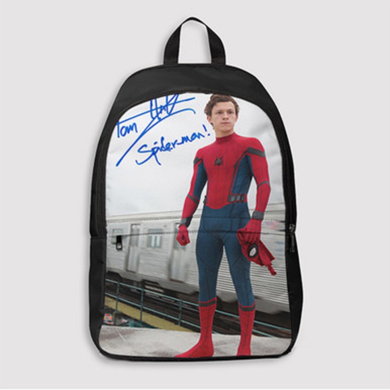 Pastele Tom Holland Spiderman Signed Custom Backpack Awesome Personalized School Bag Travel Bag Work Bag Laptop Lunch Office Book Waterproof Unisex Fabric Backpack Streamlined Backpack for Work & Play Our backpack featuring Pastele Tom Holland Spiderman Si