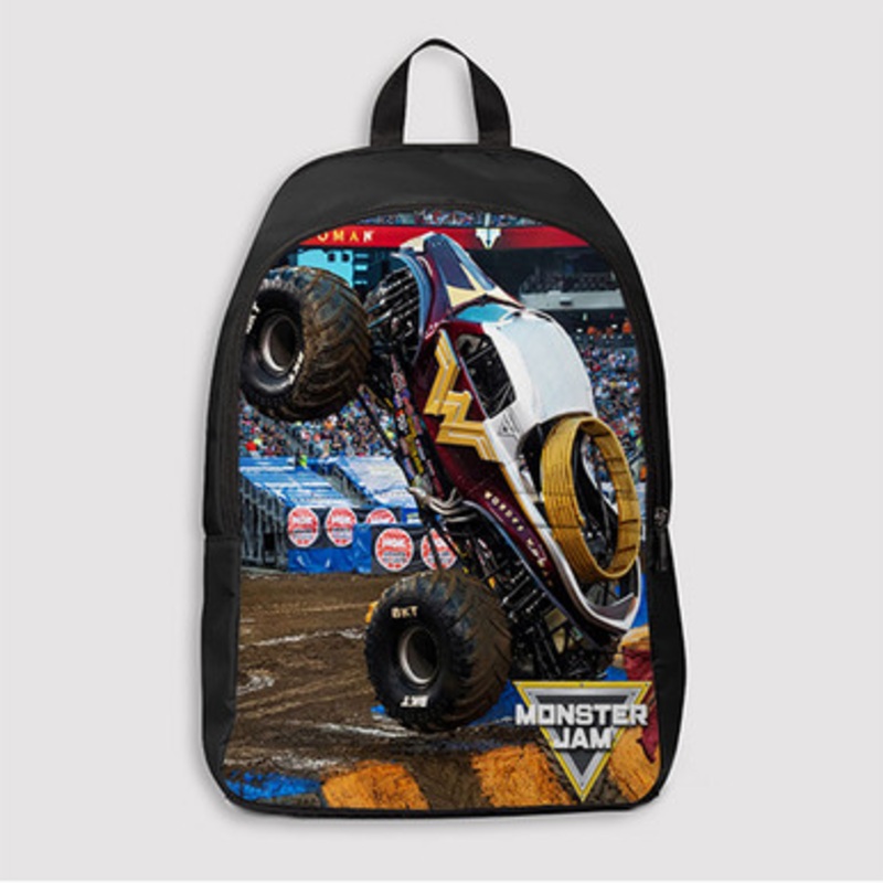Pastele Wonder Woman Monster Truck Custom Backpack Awesome Personalized School Bag Travel Bag Work Bag Laptop Lunch Office Book Waterproof Unisex Fabric Backpack Backpack with Eco-Smart Materials With every detail made for durability and distinction, the P