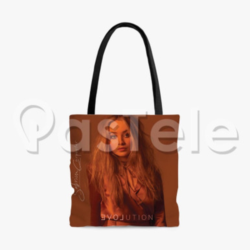Durable. Stylish. Uniquely Yours. Carry your style everywhere with our custom-printed tote bags with Sabrina Carpenter EVOLution Custom Personalized Tote Bag Polyester Cotton Bags. Made from high-quality spun polyester, these bags are built to last while t